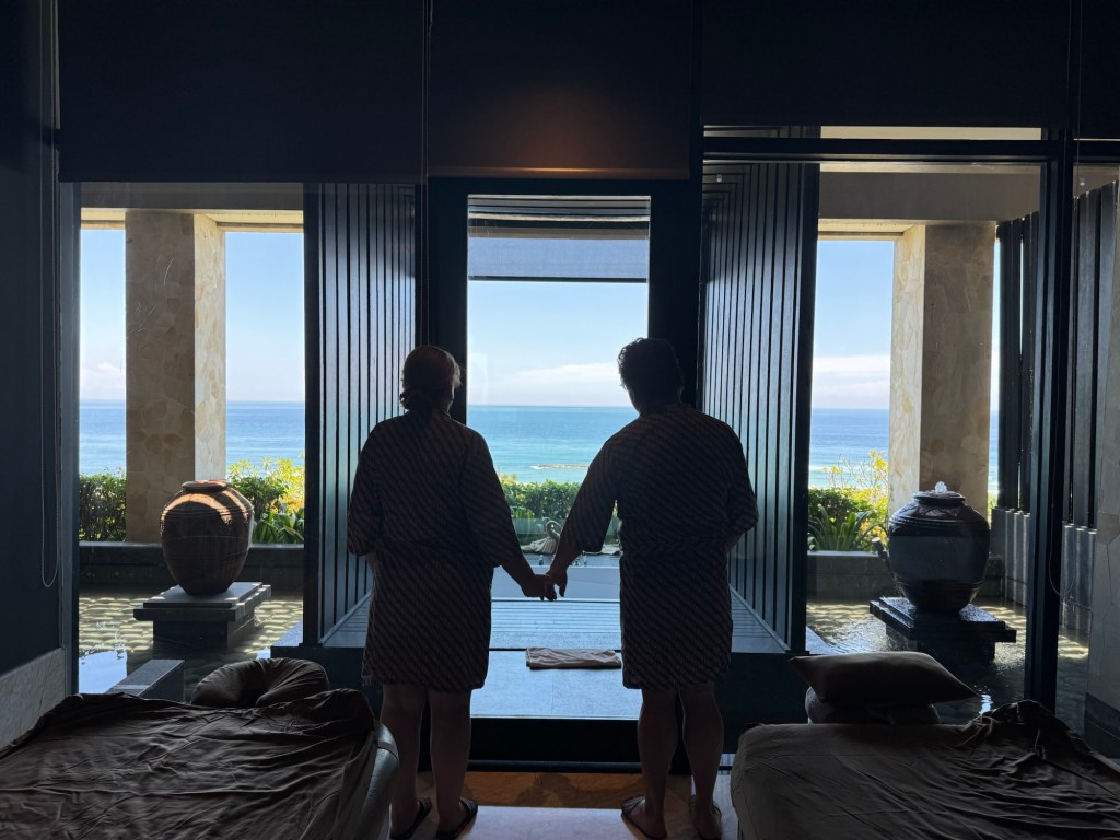 la penumbra del spa, el murmullo del mar,